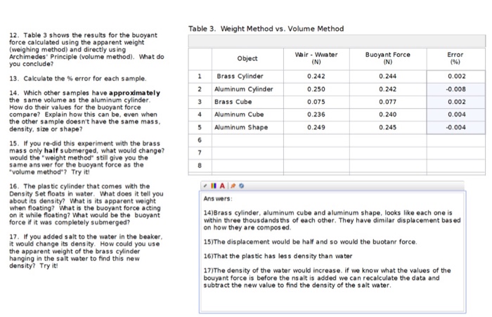 Solved Experiment 3 Buoyant Force And Archimedes Princip Chegg Com