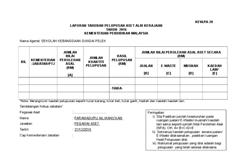4 Lampiran Kew Pa 20 Laporan Tahunan Pelupusan Aset Alih Kerajaan Doc