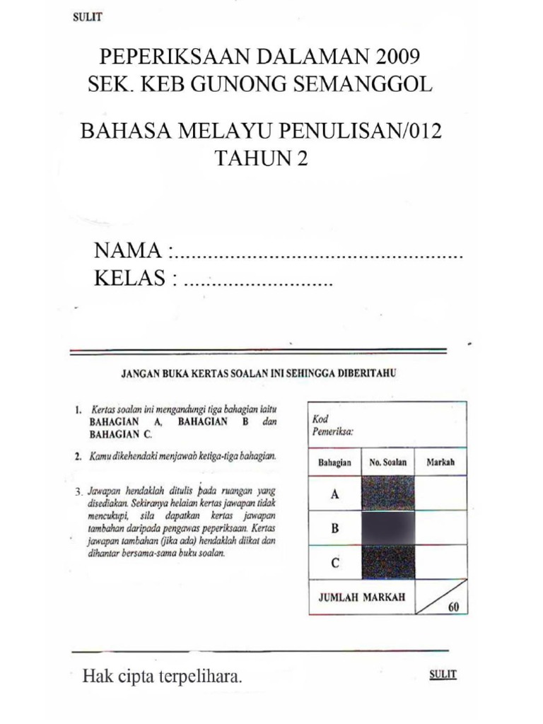Soalan Bm Bahasa Melayu Penulisan Tahun 2