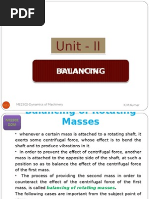 Balancing Of Rotating Masses Rotation Around A Fixed Axis Rotation
