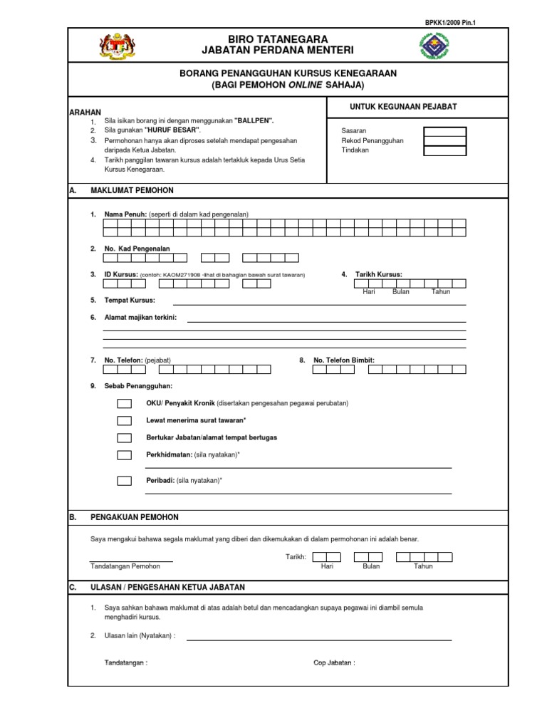 Biro Tatanegara Jabatan Perdana Menteri Borang Penangguhan Kursus Kenegaraan Bagi Pemohon Online Sahaja