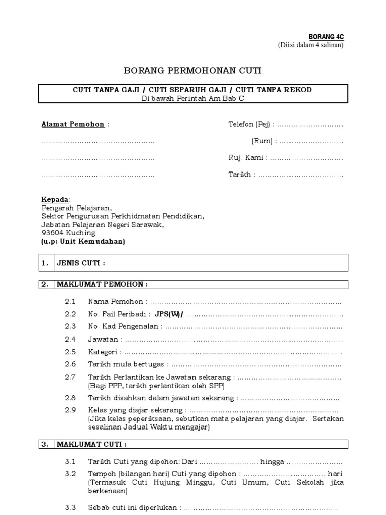 Pdf Borang 3c Borang Permohonan Cuti Cuti Tanpa Gaji Cuti Separuh Gajucuti Tanpa Rekod Di Bawah Perintah Am Bab C Sekolah Kebangsaan Bekenu Subis Academia Edu