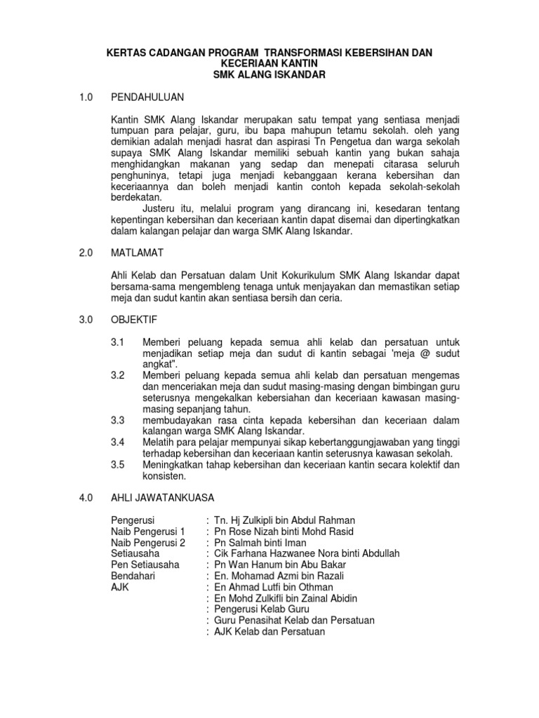 Contoh Kertas Kerja Sekolah Menengah Contoh Kono