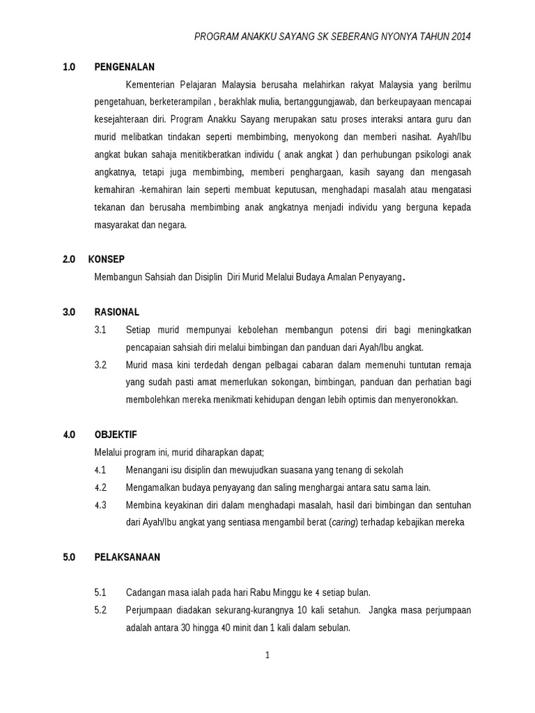 Contoh Kertas Kerja Program Anak Angkat Sekolah