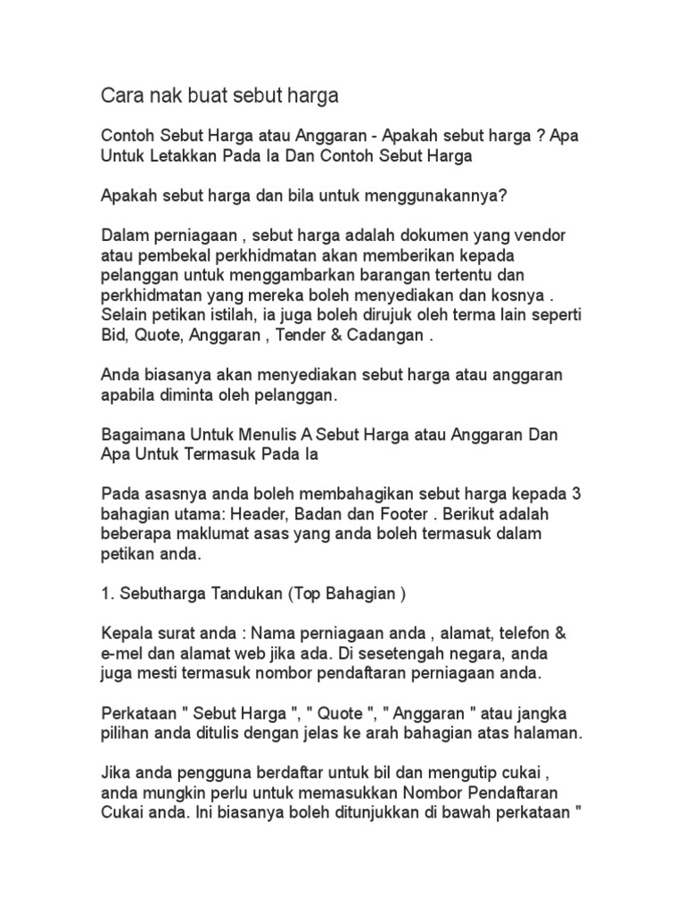 Cara Nak Buat Sebut Harga