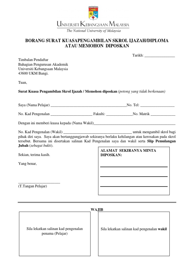 Borang Wakil Atau Diposkan Skrol