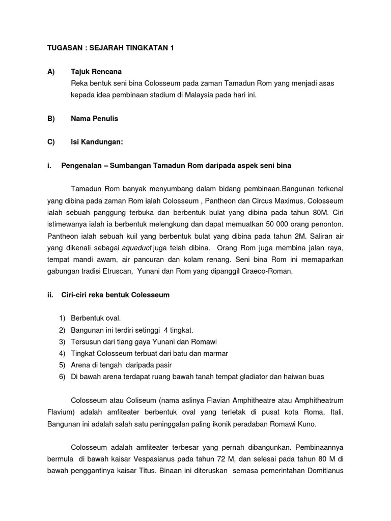 Ciri ciri persamaan seni bina tamadun rom dan malaysia. Edudulu malaysia 204 788 views. Antara bukti keupayaan masyarakat tamadun rom dalam melahirkan ciptaan yang mengagumkan dapat dilihat melalui pelbagai binaan. Dalam al qur an dijelaskan bahawa setiap tamadun yang dicapai oleh manusia hanya dapat diabadikan dan terkenal sehingga ke hari ini melalui kepakaran seni bina. Seni bina rom yang terkenal dan masih kekal hingga hari ini ialah colosseum pantheon amfiteater akueduk jalan raya tembok pertahanan dan tempat mandi awam.