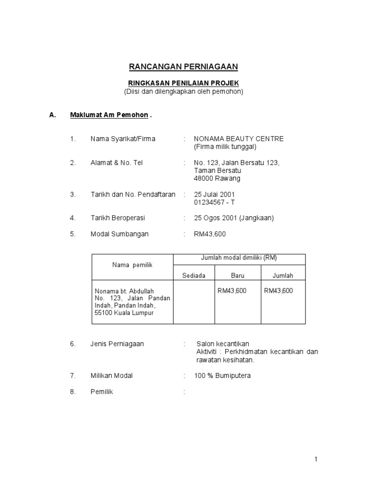 Rancangan Perniagaan Salon Kecantikan