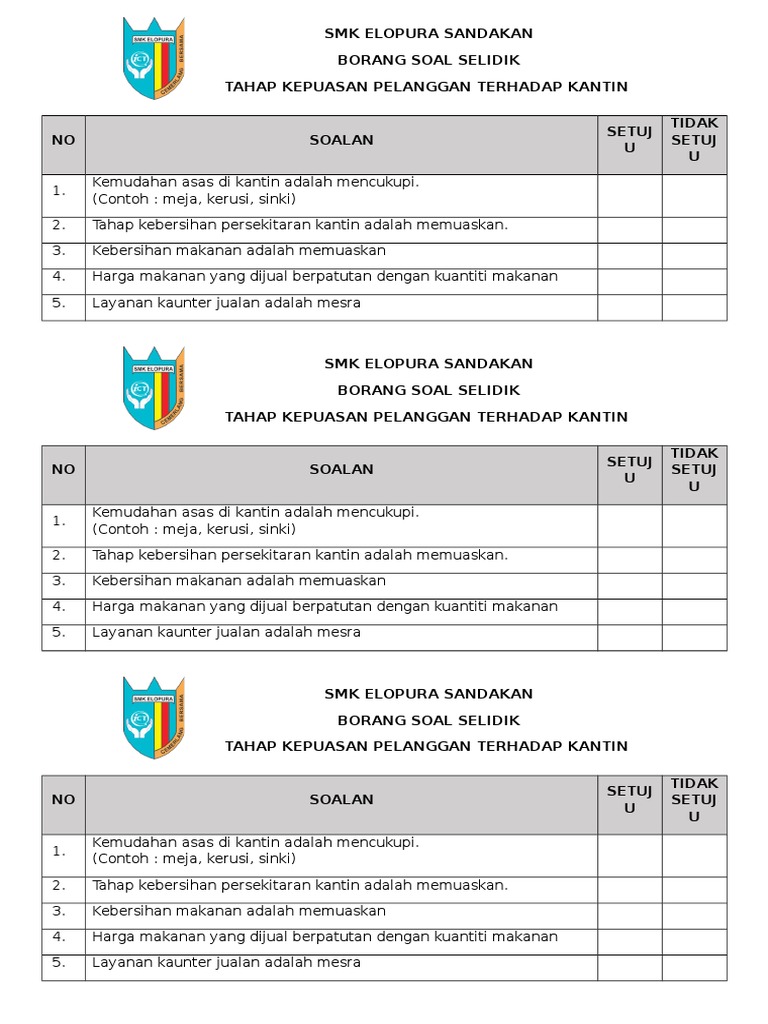 Contoh Borang Soal Selidik Kepuasan Pelanggan Terhadap Makanan