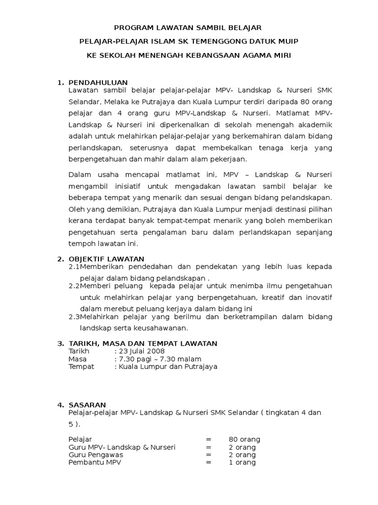 Doc Contoh Kertas Kerja Lawatan Mohd Hamdi Salleh Academia Edu