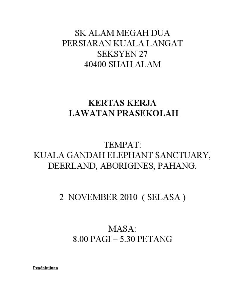 Contoh Kertas Kerja Lawatan Ke Langkawi Info Masaran Cute766