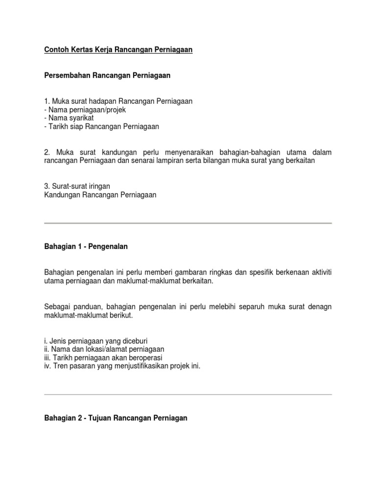 Contoh Kertas Kerja Perniagaan Yang Ringkas Puasauu