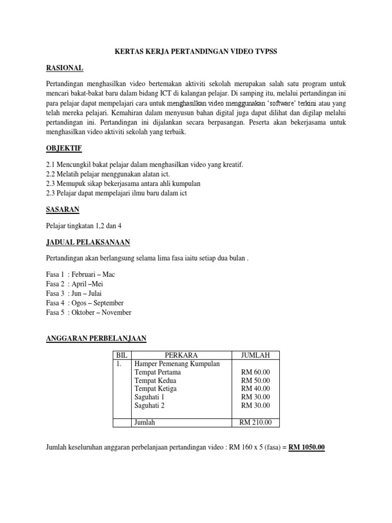 Contoh Kertas Kerja Pertandingan Video Pendek