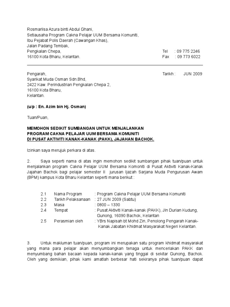 Doc Surat Menyurat Meminta Sumbangan Sufikaisara Rania Academia Edu