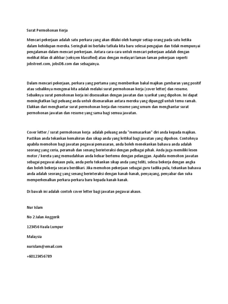 Contoh Surat Permohonan Kerja Kerani Dalam Bahasa Inggeris Kerja Kosk