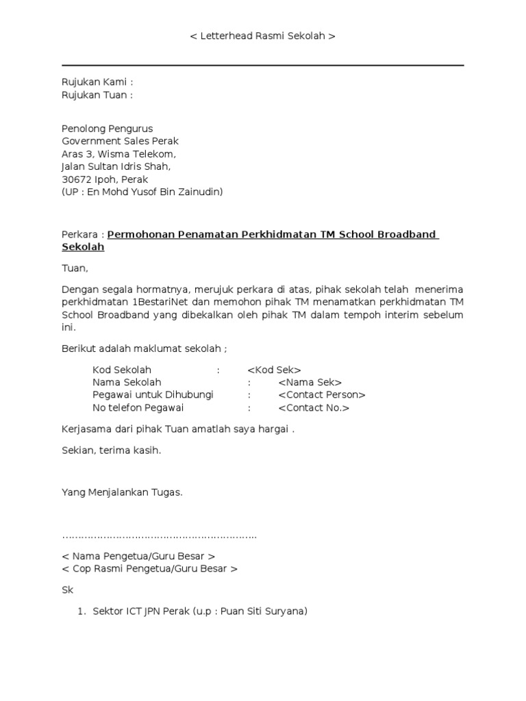 Contoh Surat Rasmi Permohonan Talian Telefon Surat Rasmi M