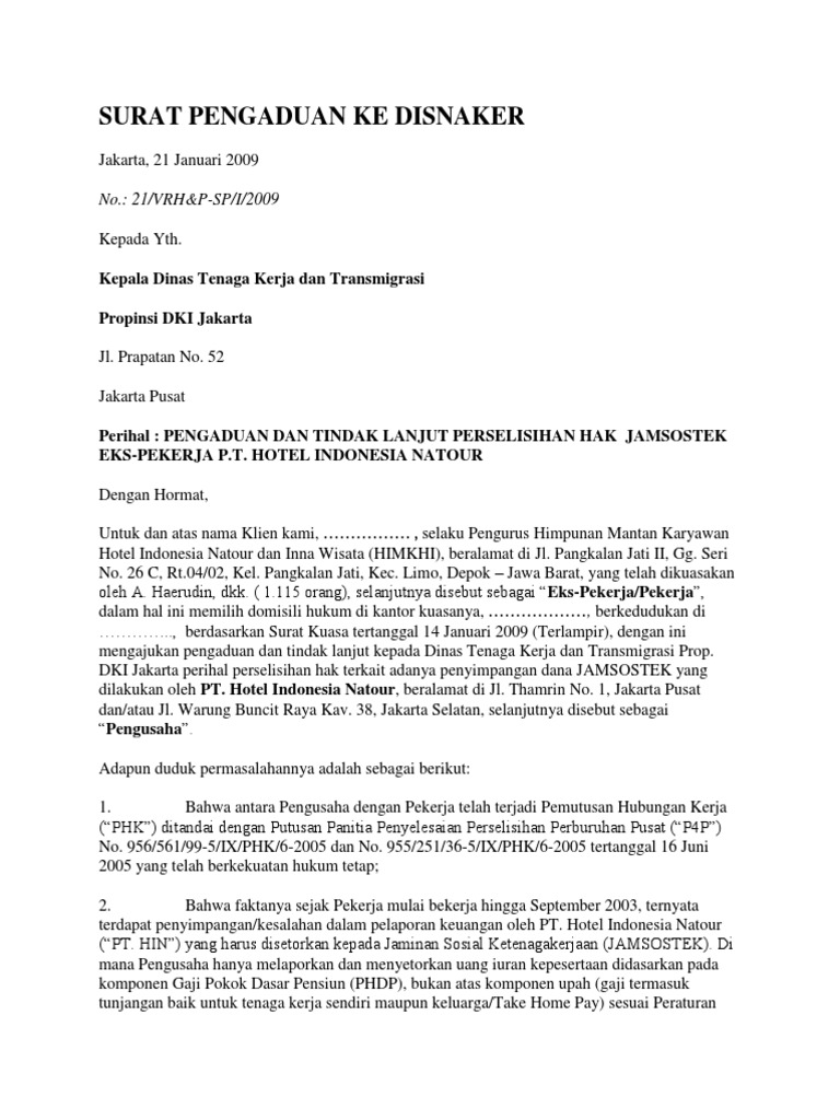 Contoh Surat Pengaduan
