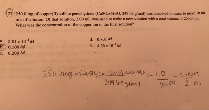 Solved 27 250 0 Mg Of Copper Ii Sul Fate Pentahydrate C Chegg Com