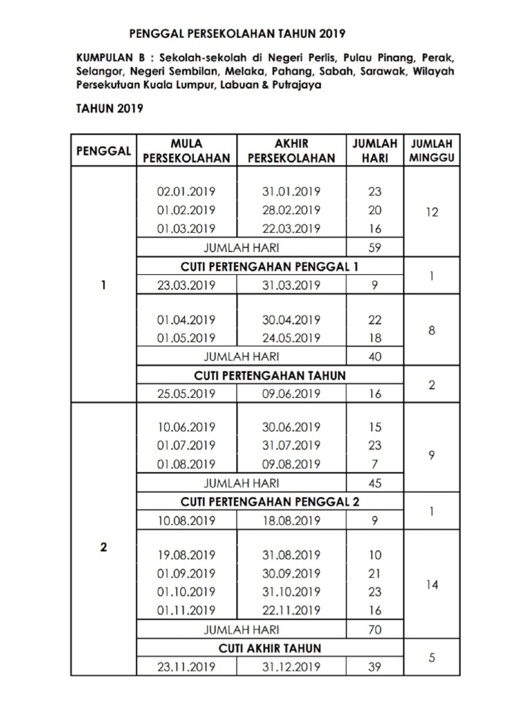 Kalendar Cuti Sekolah Cuti Umum 2019 Takwim Persekolahan Kpm