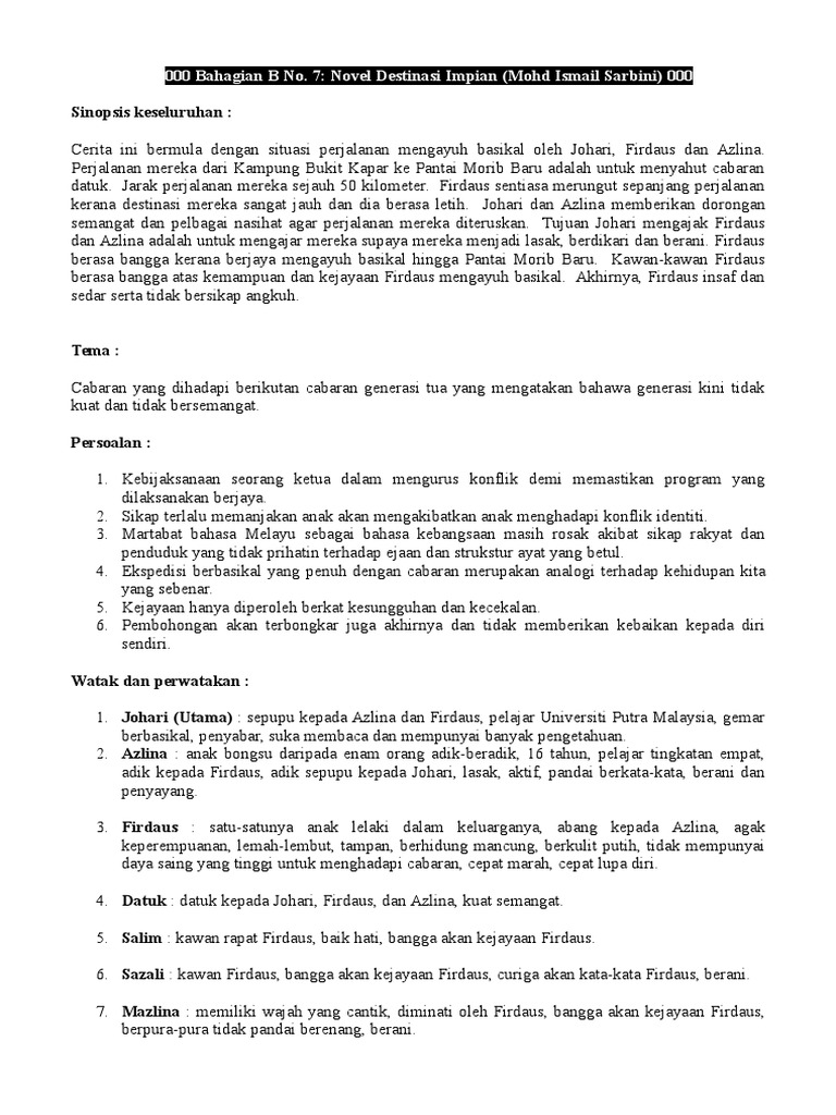 Komsas 1 Pdf Novel Destinasi Impian Sinopsis Tingkatan 1 Johari Azlina Dan Firdaus Telah Menyahut Cabaran Datuk Mereka Untuk Melakukan Ekspedisi Course Hero