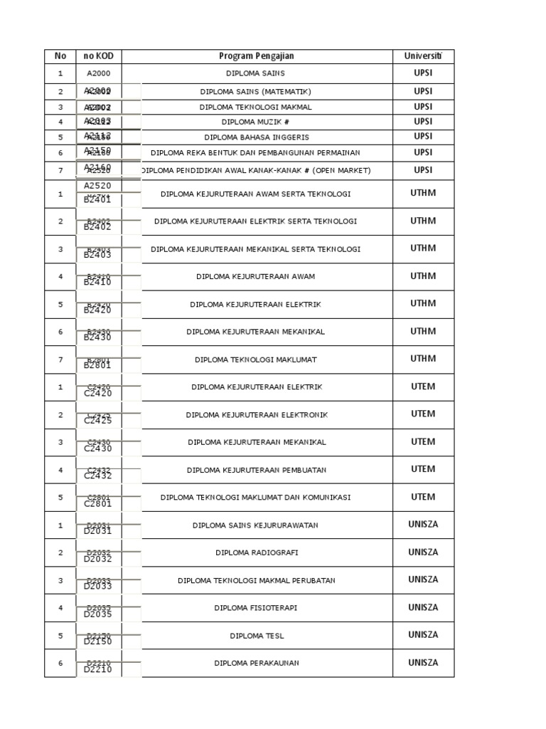 Senarai Pilihan Program Pengajian Ipt