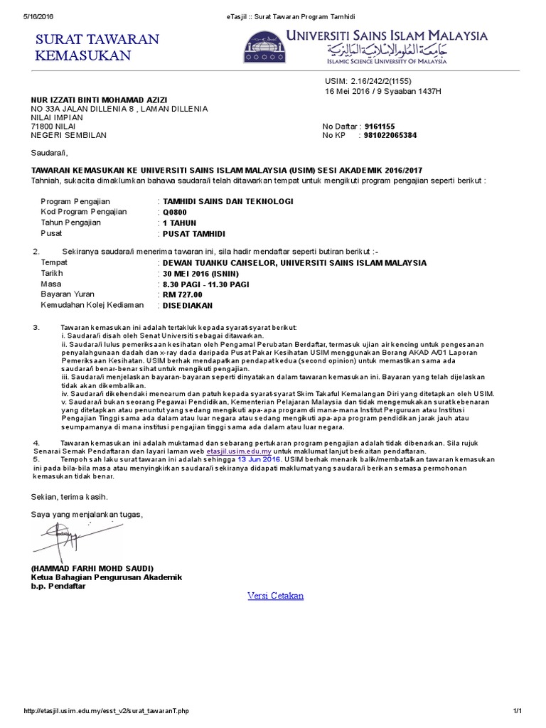 Perhatian Semakan Panggilan Temu Universiti Sains Islam Malaysia Usim Facebook
