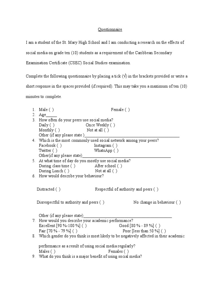 Questionnaire Social Media As Educational Tool