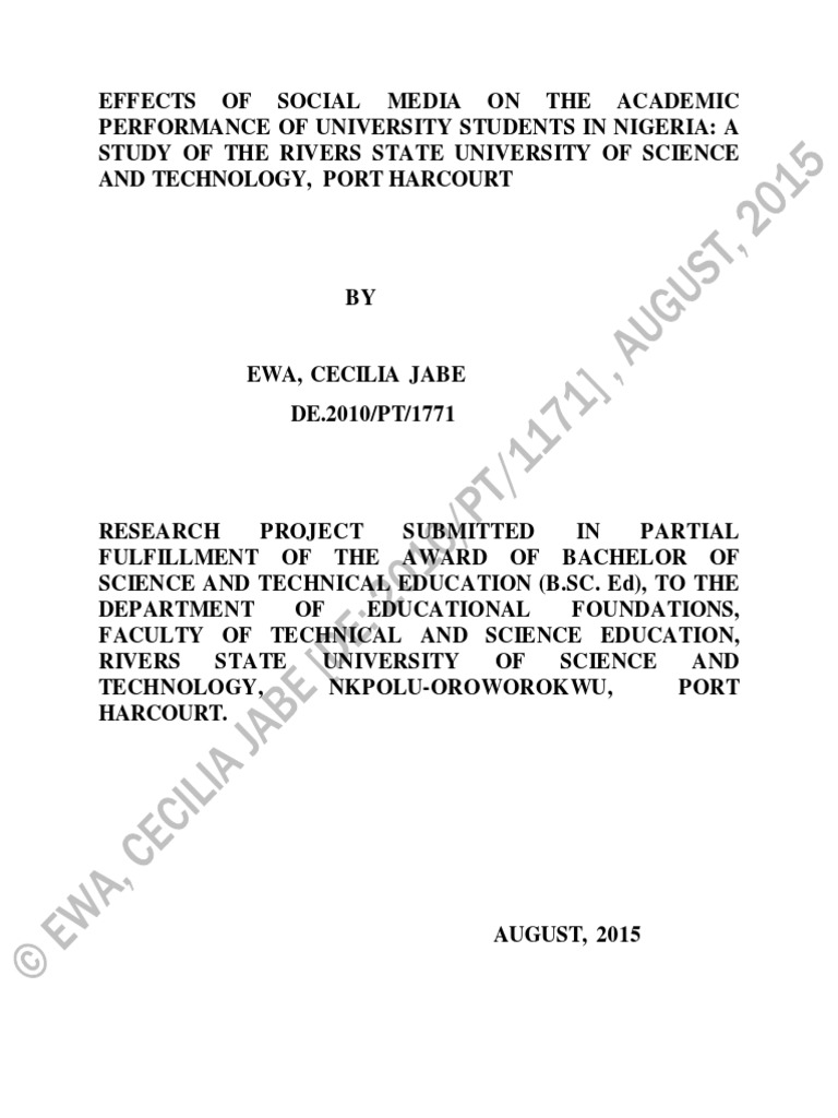 Effects Of Social Media On The Academic Performance Of University Students In Nigeria A Study Of The Rivers State University Of Science And Technology Social Networking Service Digital Social Media