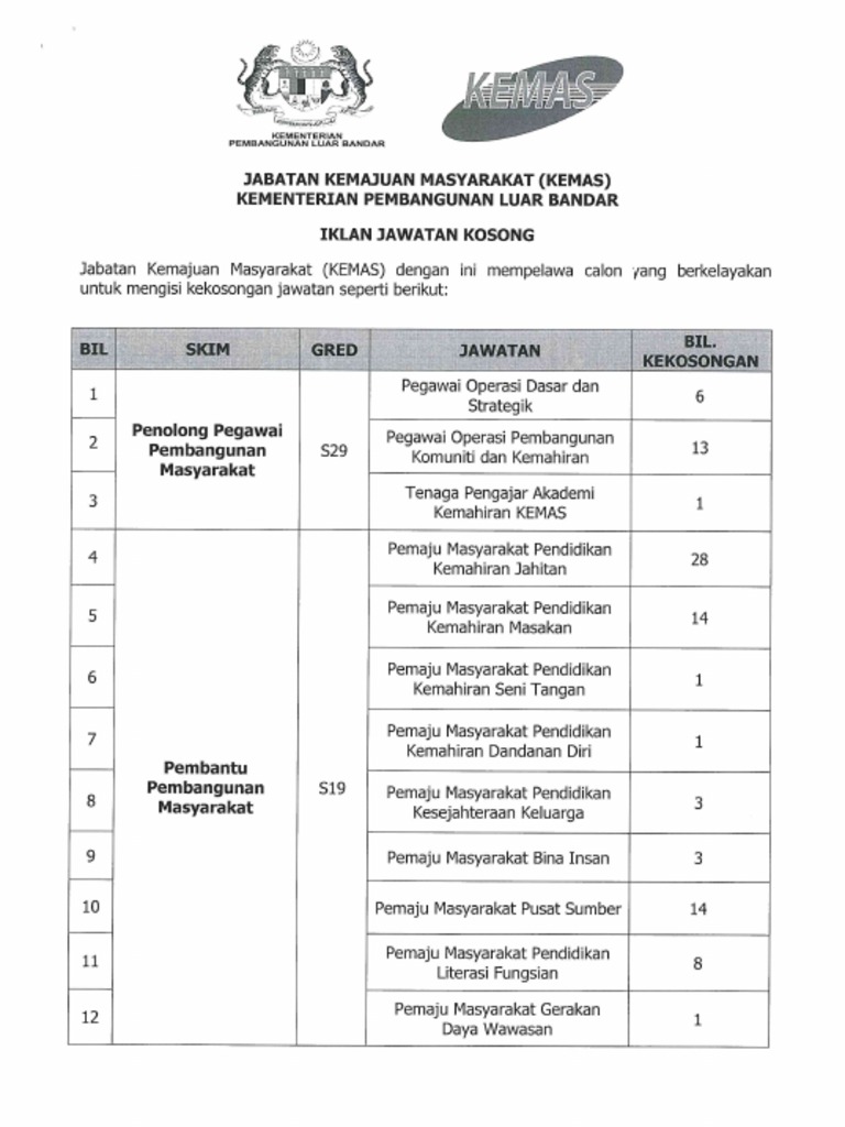 Download Iklan Jawatan Kosong Jabatan Kemajuan Masyarakat Kemas Cute766