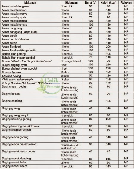 Senarai Jadual Kalori Makanan Dan Minuman Malaysia Vitamin Semulajadi