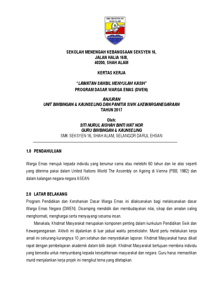 Doc Kertas Kerja Lawatan Ke Rumah Jagaan Orang Tua Nor Wahyuni Academia Edu