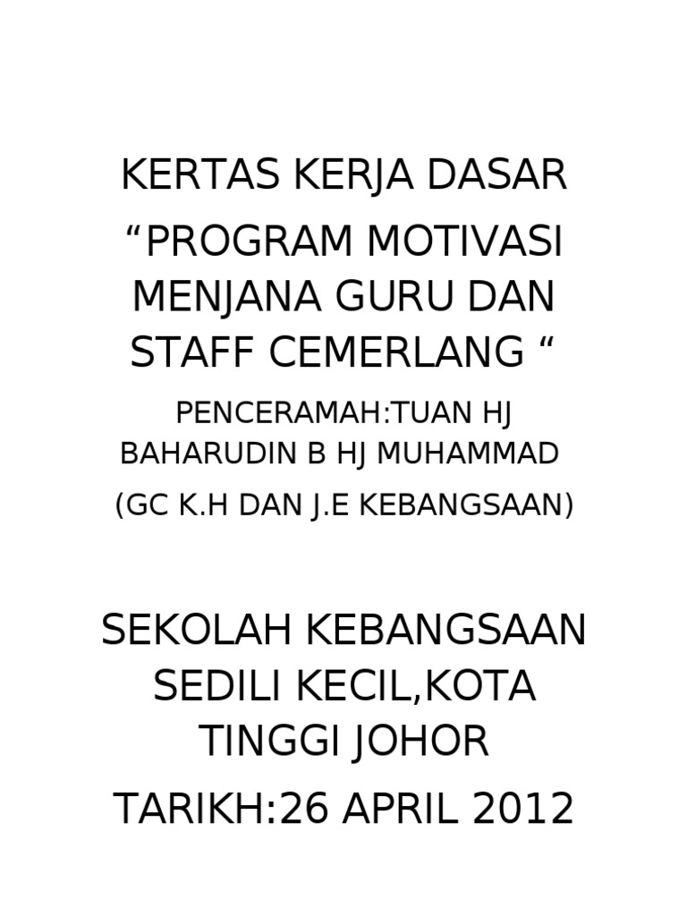 Contoh Kertas Kerja Program Motivasi Docx