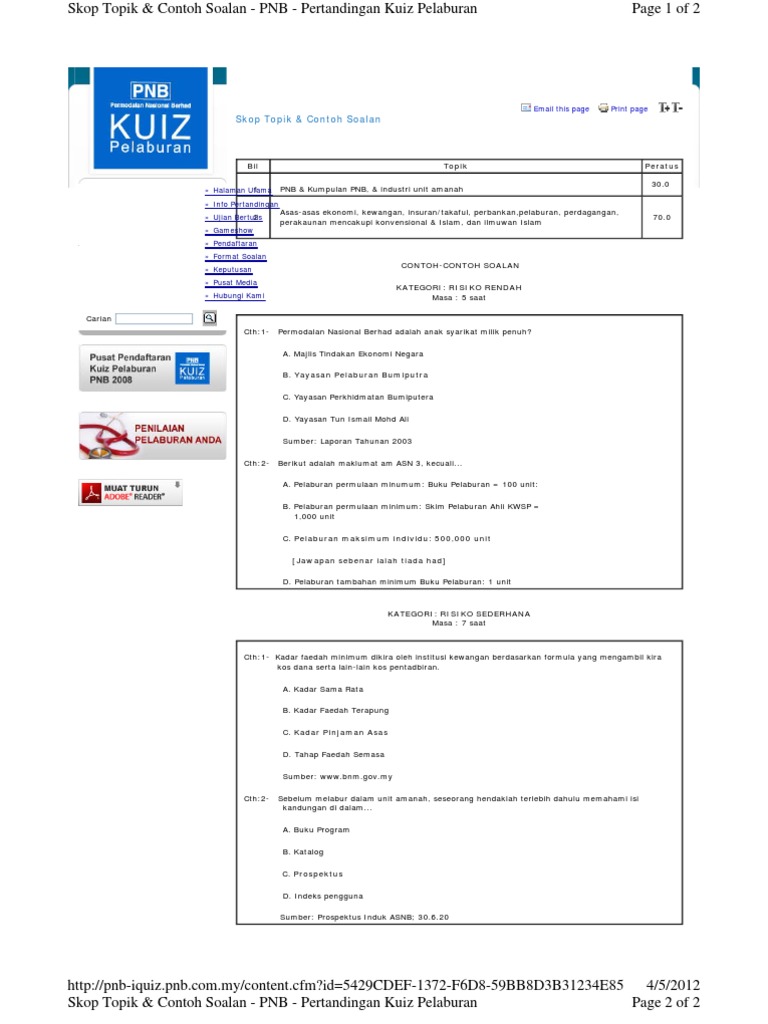 Contoh Soalan Kuiz Pelaburan Pnb 2017 Ykebaya