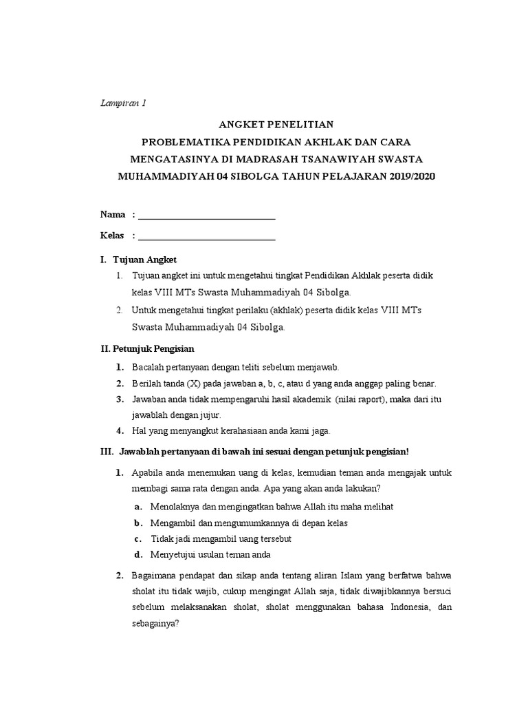 Lampiran 1 Kuesioner A Identitas Responden A Nama B Umur C Bak Sampah Tertutup B Bak Sampah Terbuka C Ditanam D Dibakar E Dibuang Ke Kali Kebun