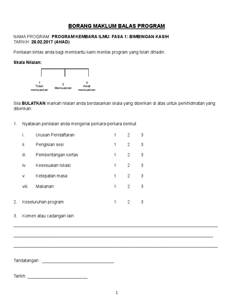 Doc Contoh Borang Maklum Balas Alyaa I Mohd Razali Academia Edu