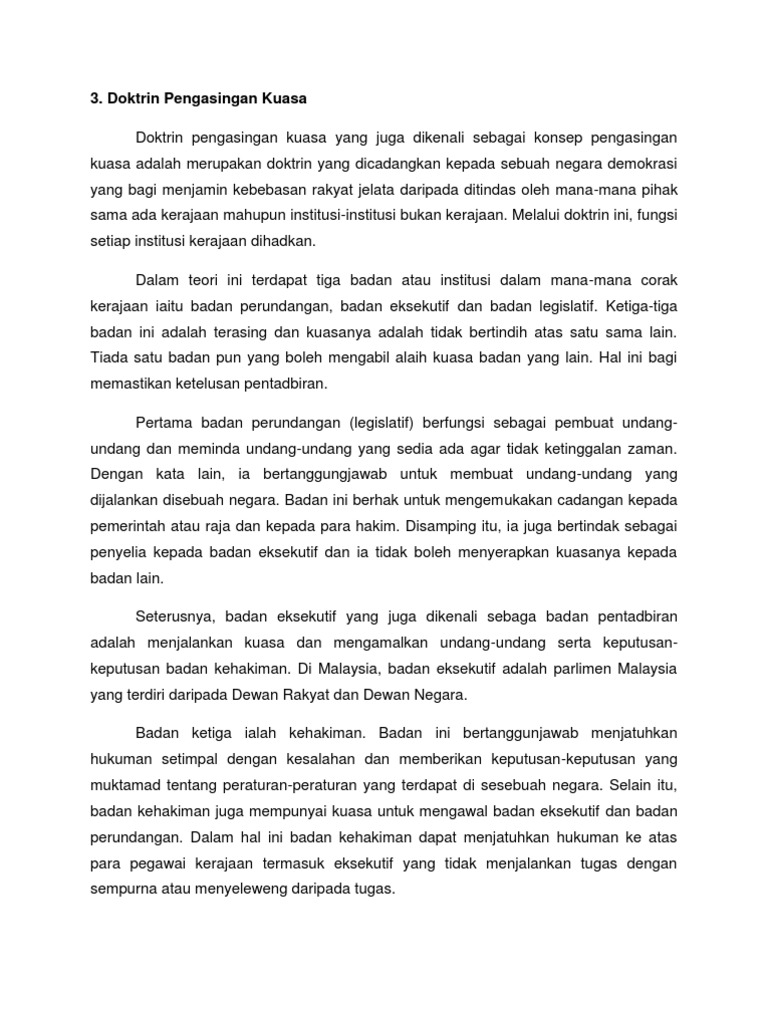 Doc Doktrin Pengasingan Kuasa Dan Pengamalannya Di Malaysia Docx Muhammad Iskandar Academia Edu