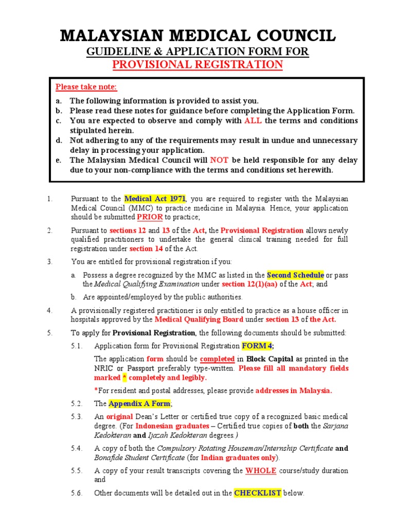 Malaysian Medical Council Guideline Application Form For Full Registration For Non Citizens Completing Internship Abroad Pdf Free Download