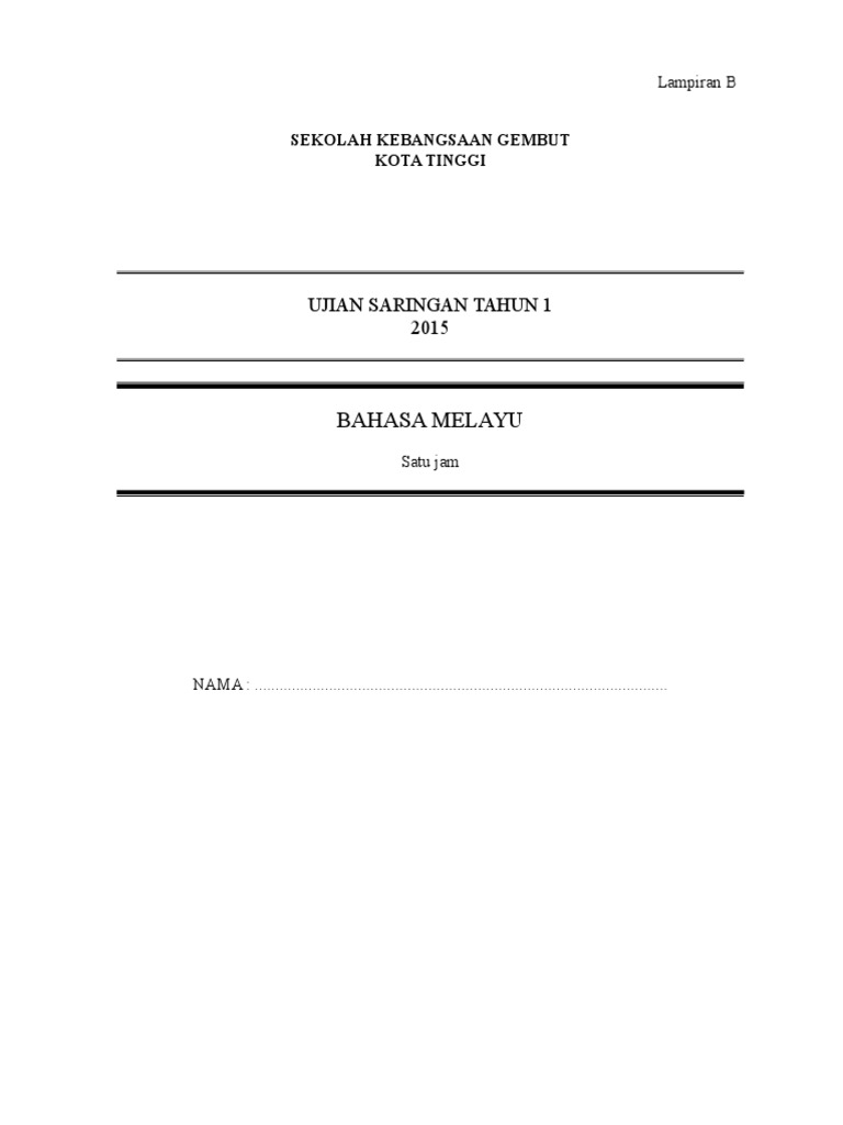 Contoh Soalan Ujian Pengesanan Tahun 1 Bahasa Melayu Gong Shim A