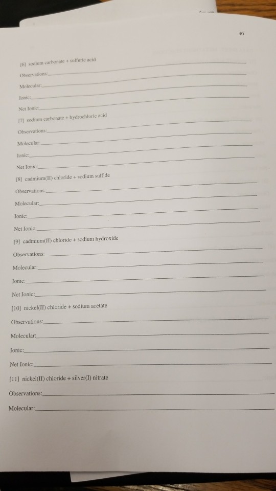 Solved A Metathesis Reactions 1 Copper L I Sulfate Sodium Carbonate Observations Blue Cloudy Precipitate Molecular Equation Cusoa Nazcoa Course Hero