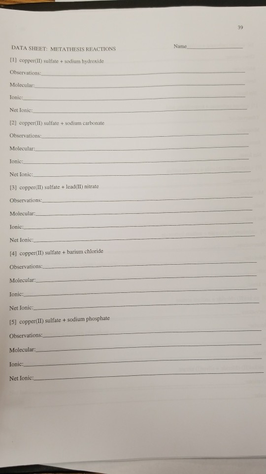 Solved 39 Name Data Sheet Metathesis Reactions 1 Coppe Chegg Com