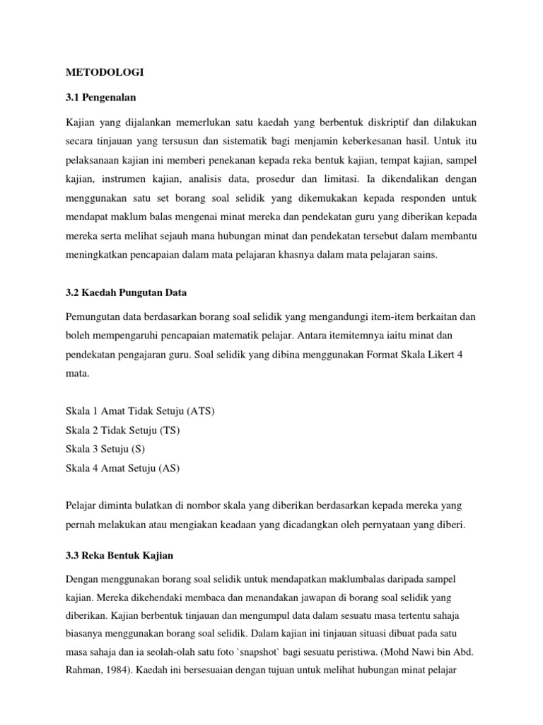 Bab 3 Metodologi Dan Prosedur Kajian Pdf Document