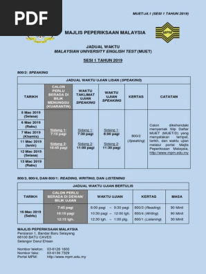 Muet J 4 1 Jadual Waktu Muet Sesi 1 2019