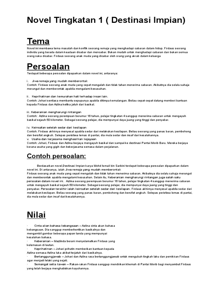 Komsas 2 Pdf Novel Destinasi Impian Tema Dan Persoalan Tingkatan 1 Tema Novel Ini Membawa Tema Masalah Dan Konflik Seorang Remaja Yang Menghadapi Course Hero