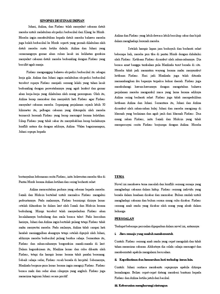 Sinopsis Novel Destinasi Impian Pages 1 8 Text Version Anyflip