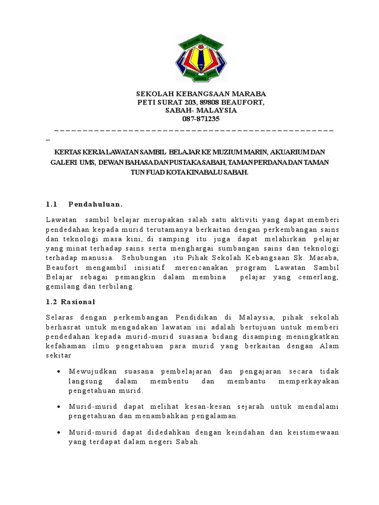 Kertas Kerja Lawatan Ke Terengganu Kertas Belajar Guru