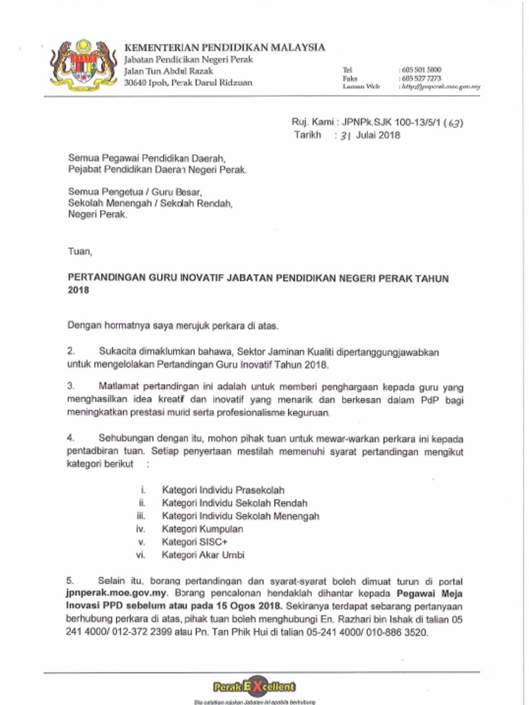 Surat Pertandingan Guru Inovatif Jpn Tahun 2018