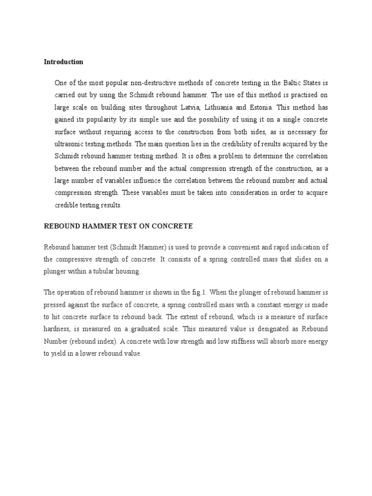 Report Of Rebound Hammer Test Concrete Applied And Interdisciplinary Physics