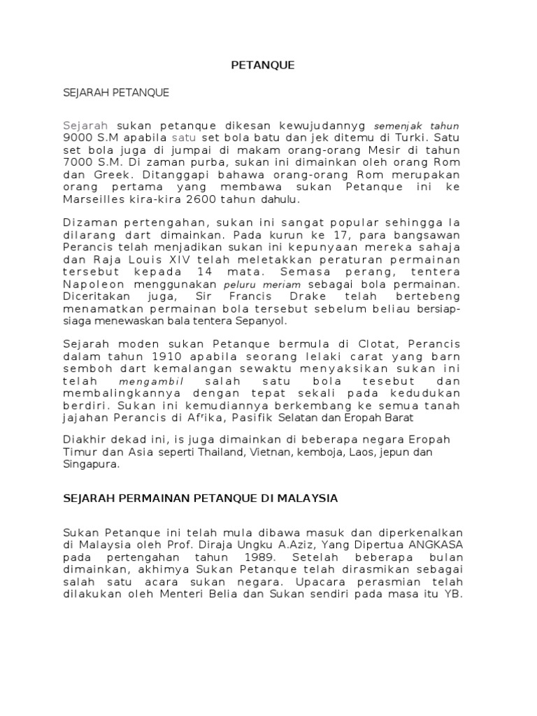 Doc Sejarah Petanque Iza Alonezz Academia Edu
