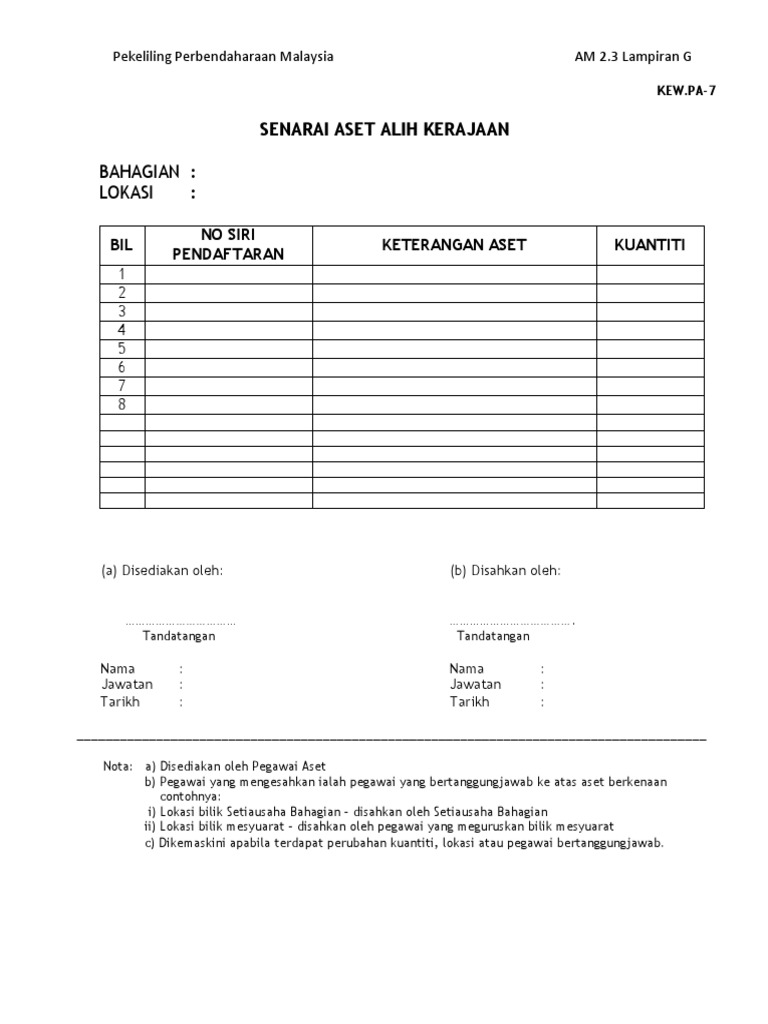 Senarai Jenis Jenis Borang Kew Pa Aset