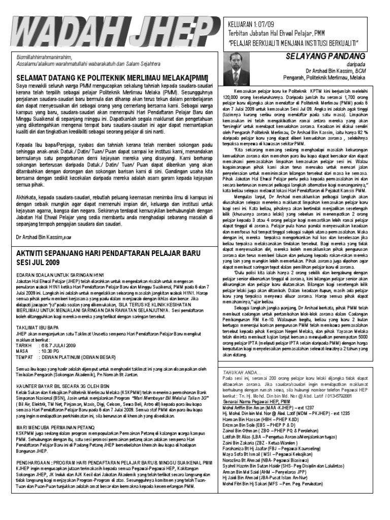 Aluan Pengarah Politeknik Merlimau Assalamualaikum W B T Dan Salam Sejahtera Pdf Free Download